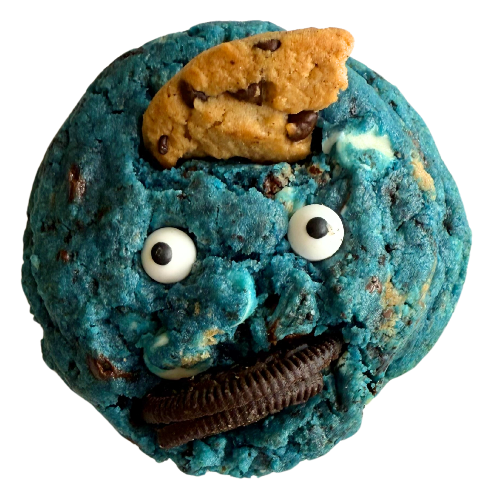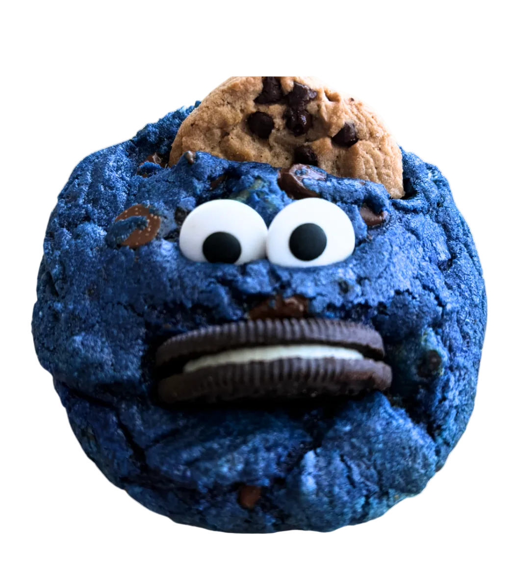 Prepare to meet your new favorite indulgence! Our Cookie Monster Cookie is a mouth-watering mashup of everything you love. We've packed it with chunks of Oreo, crunchy Chips Ahoy, creamy white chocolate chips, and rich chocolate chips – all baked into one giant, irresistible cookie. Each bite is a chewy, crunchy, chocolaty dream that’s sure to satisfy even the biggest sweet tooth. Get ready to go wild for this cookie!